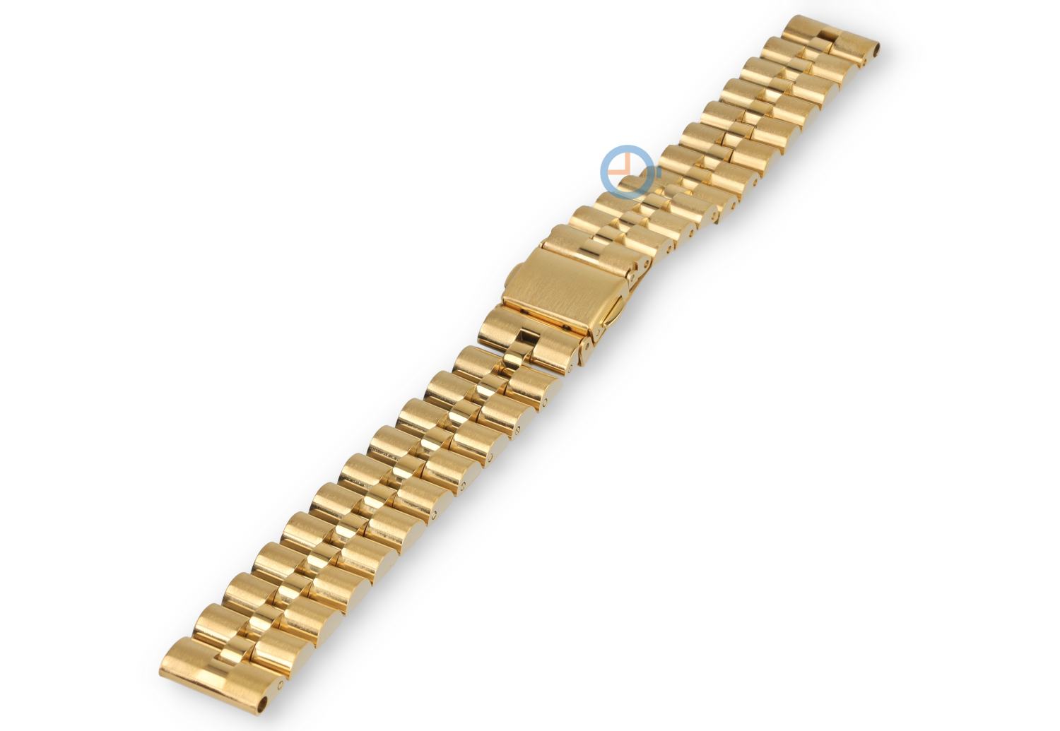 14mm metal watch strap in Rolex President style. A President-style strap is known for its matte outer links and polished, rounded center links – a design often seen on Rolex Day-Date watches.