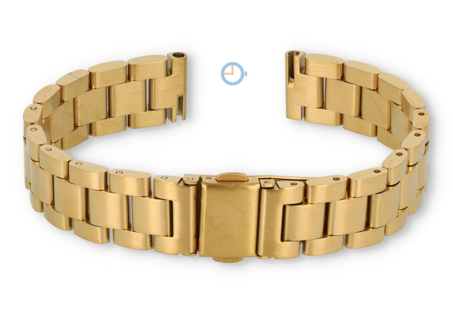 Universal watch strap for watches with a 14mm starter. The hard and pure steel is processed with high precision and has a very long life. This golden watch strap attaches with 14mm Quick Switch spring bars.Use our removal tool from our webshop to remove the old watch strap from your watch.