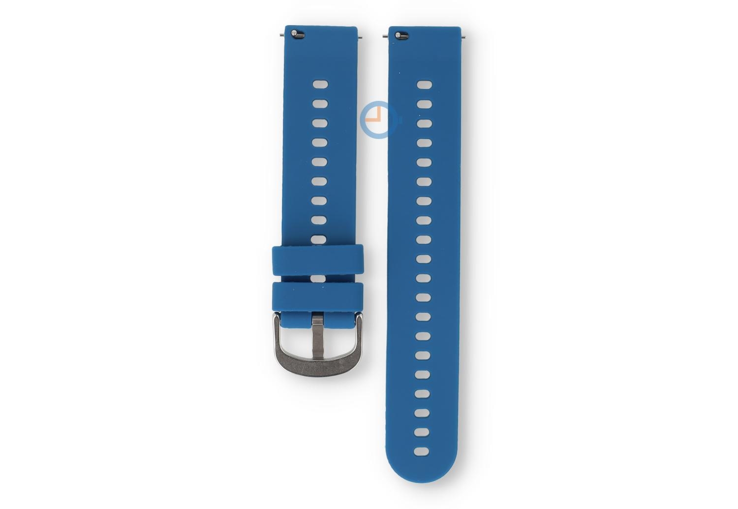 18mm silicon watch strap: frosted blue. Transformeer je sports watch of wearable met onze trendy gekleurde silicon straps. Dit horlogebandje of 18mm, made of supple and durable silicone, instantly makes your watch sportproof in a stylish way. Perfect for sporting activities and everyday use, the strap wears at 16 different sizes - perfect for the smallest wrist.