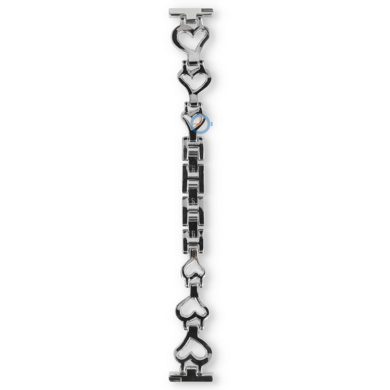 20mm steel watch strap with elegant details. This trendy strap has the look of a stylish bracelet and features heart-shaped links with small sparkling stones.