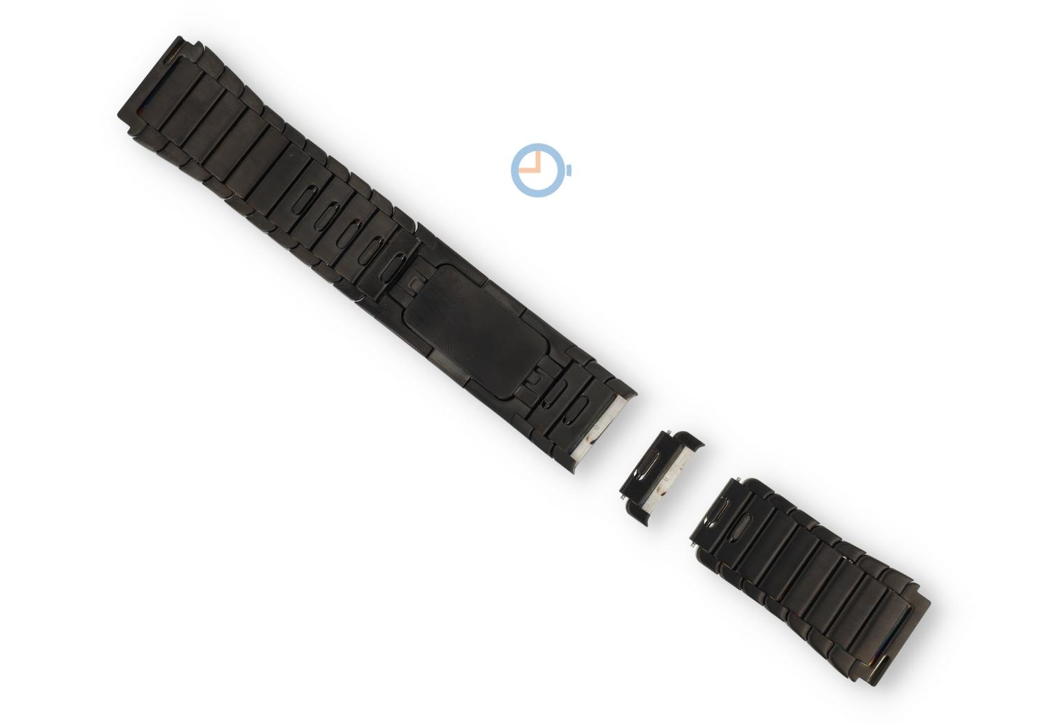 22mm titanium watch strap – black. The titanium is many times stronger than a standard steel watch band and much lighter in weight. This stylish watch strap is allergy-free and now even easier to customise. A few links have a small handle in the link, which makes it easy to click it out of the strap.