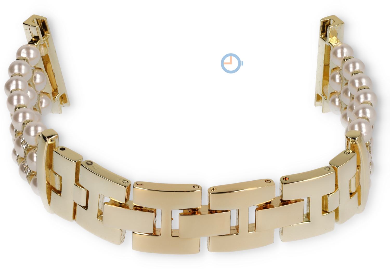 20mm steel watch strap with elegant details. This trendy strap has the look of a stylish bracelet and features heart-shaped links with small sparkling stones.