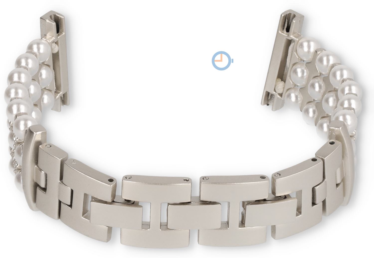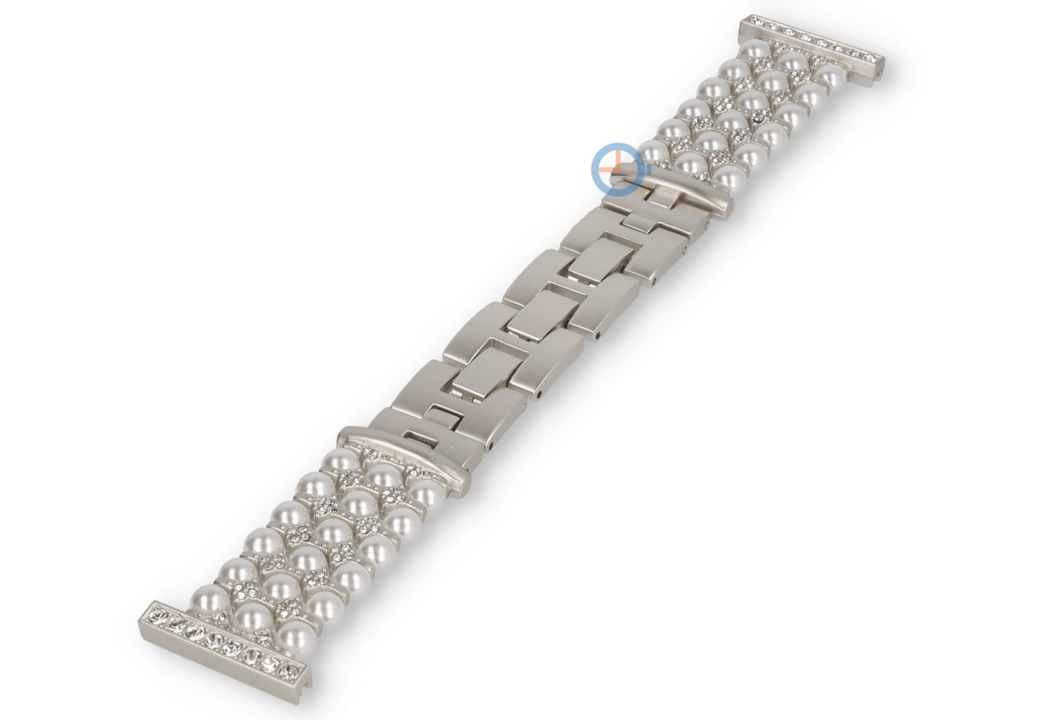 20mm steel watch strap with elegant details. This trendy strap has the look of a stylish bracelet and features heart-shaped links with small sparkling stones.