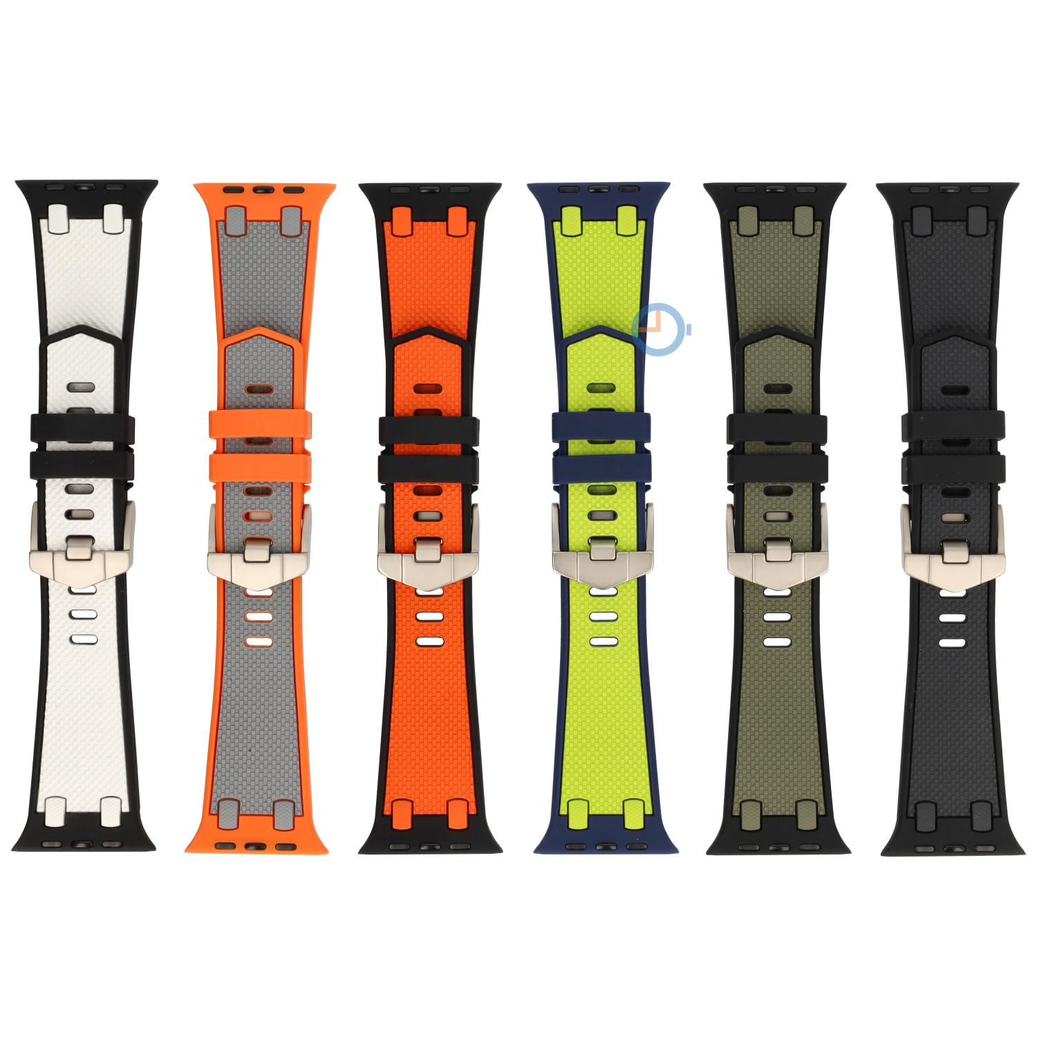 Apple Watch watch strap in the style of Audemars Piguet - Apple size: 45mm - Black Army. Discover this fabulous silicon watch band today in Audemars Piguet style, especially for your Apple Watch. Create that cool look and choose from different colours. All the advantages of this watch strap at a glance: affordable, hard-wearing, colourfast, resistant to high temperatures, waterproof, dustproof, odour-free, anti-allergic and long-life.