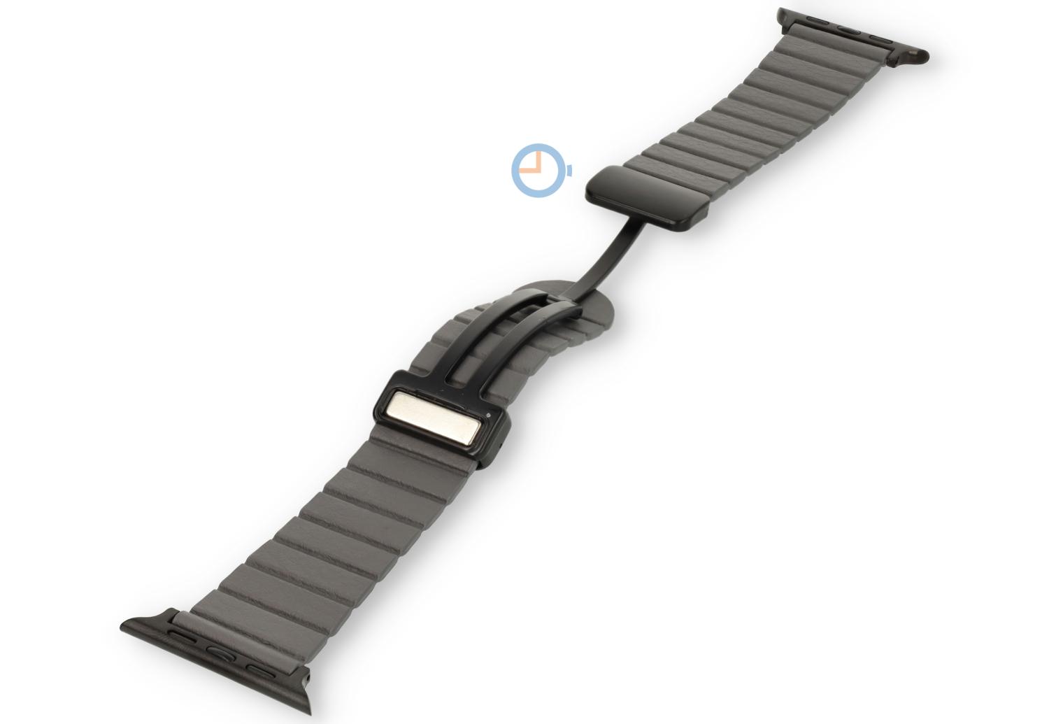 Leather watch strap with magnetic clasp for your Apple Watch 45mm - colour: Grey. Order this leather Apple Watch watch strap today. Perfect for all your daily activities, business meetings or festive occasions. The watch strap is thin, supple and easy to wear. The high-quality leather gives a sophisticated look to your Apple Watch, making it an ideal companion for any occasion.