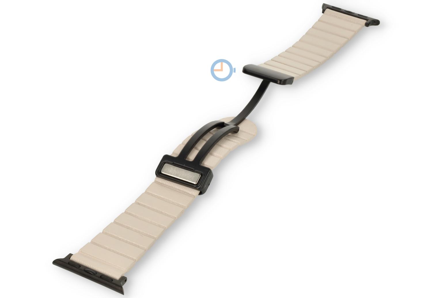 Leather watch strap with magnetic clasp for your Apple Watch 45mm - colour: Offwhite. Order this leather Apple Watch watch strap today. Perfect for all your daily activities, business meetings or festive occasions. The watch strap is thin, supple and easy to wear. The high-quality leather gives a sophisticated look to your Apple Watch, making it an ideal companion for any occasion.