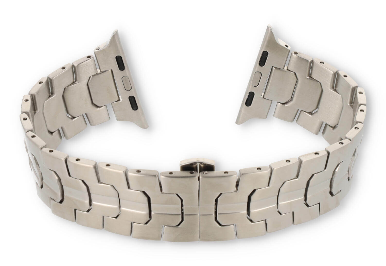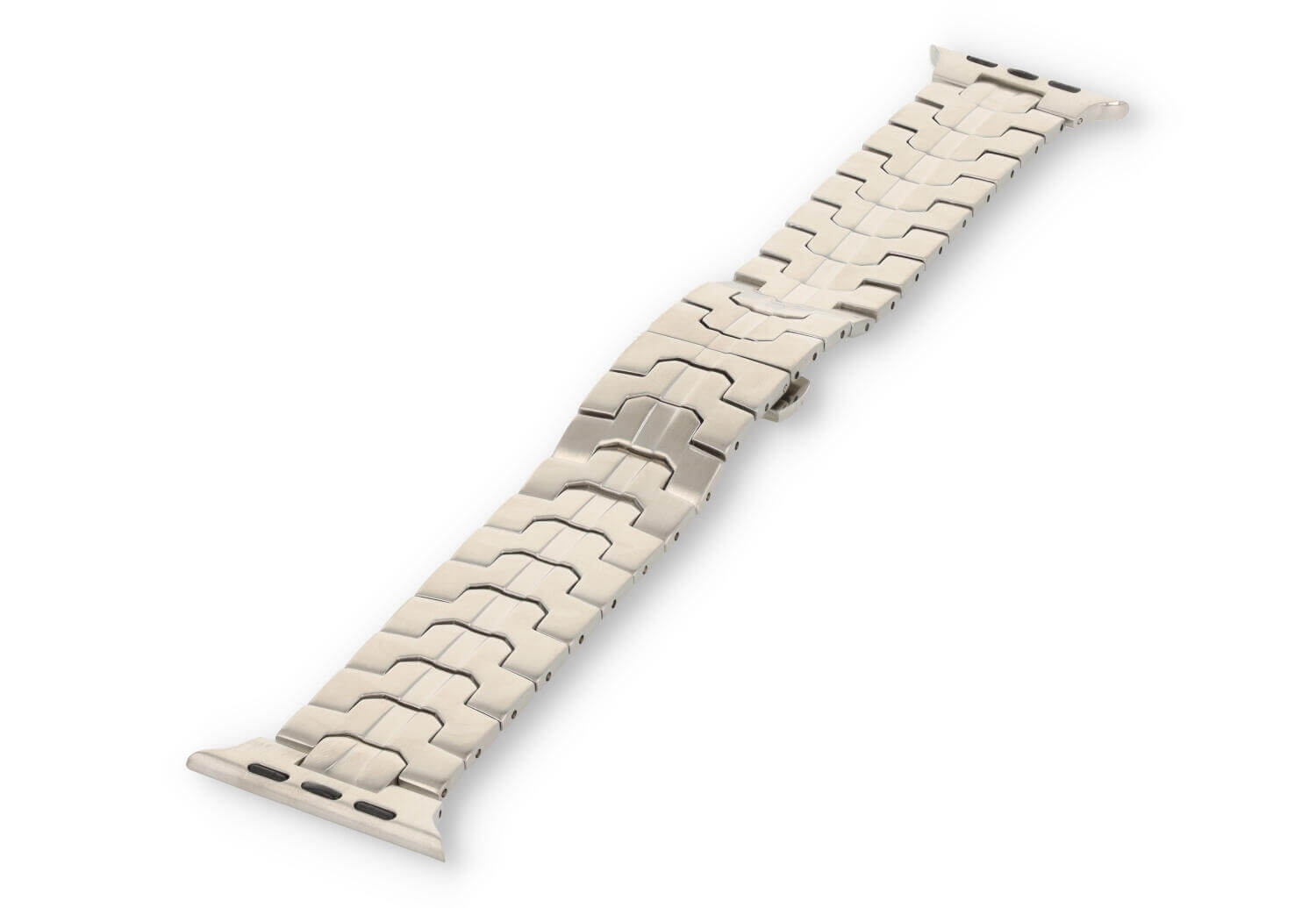 A stylish watch band for the Apple Watch 44/45/46/49mm. Changing Apple watch bands is child's play. So you can style your Apple Watch to match your outfit. The steel gives your watch a stylish/classy look, but the cool coloured stripe on the strap adds a sporty twist. Made of stainless steel with a strong security clasp.