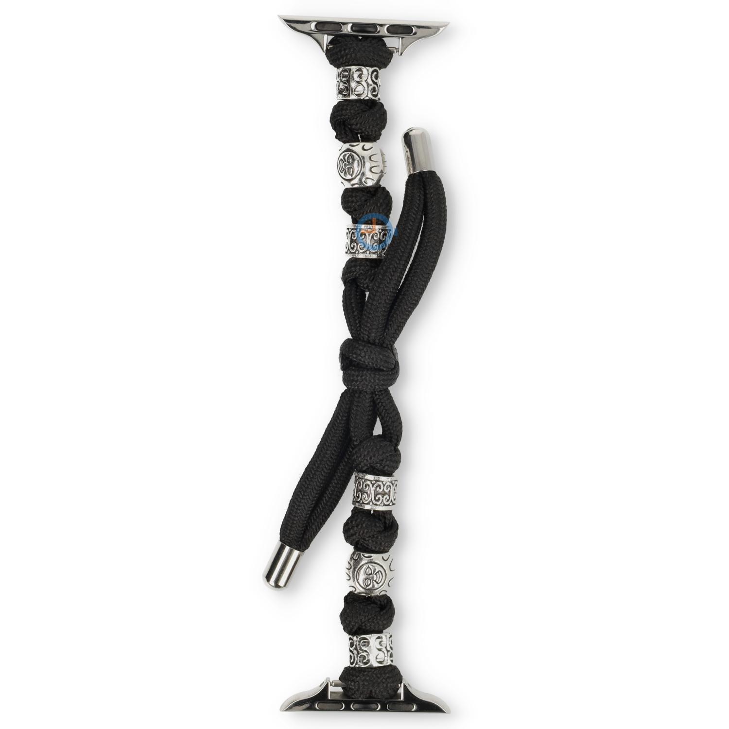 This strap is specially designed for the Apple Watch 41mm and made from durable cord with hand-knotted details. The steel charms feature fine engravings, giving the band an artistic, boho-inspired look. Each charm is secured between knots, making the strap both visually striking and secure on the wrist.