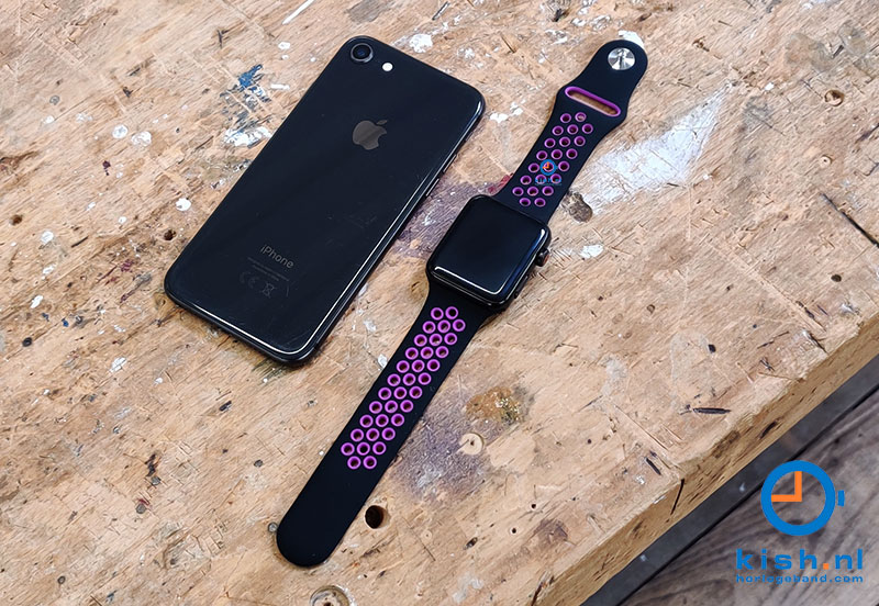 Apple watch sports watchband. This silicone watch strap is very flexible which results in a nice wearing comfort. The watchstrap closes with a pushbutton which makes the watch strap very user-friendly. This watchband seamlessly attaches to your Apple watch and is easy to assemble.