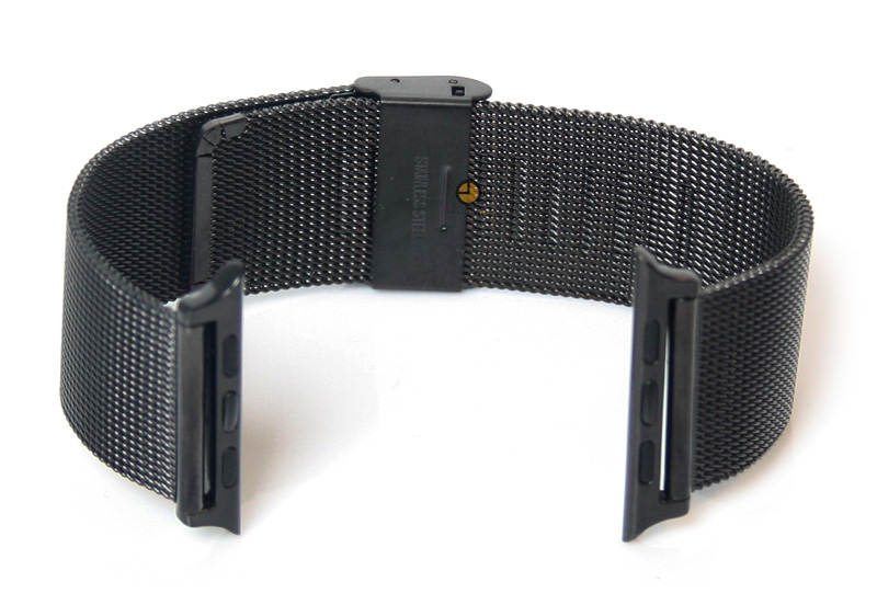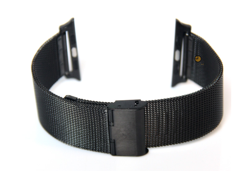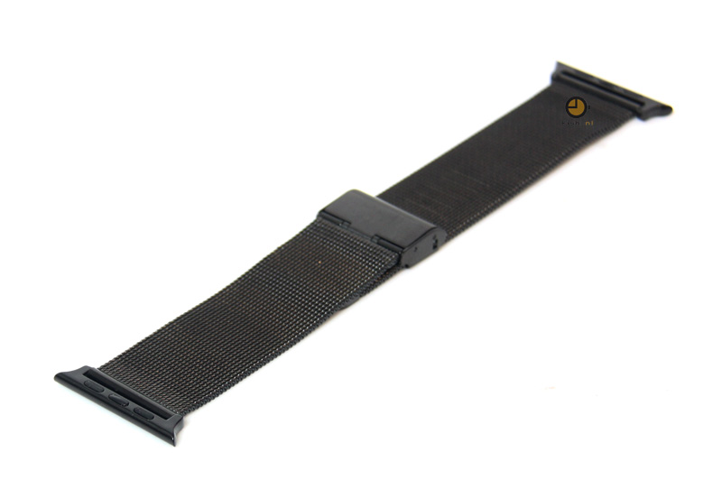 Apple watch strap black milanees. Stainless steel strap with a comfortable security clasp. This strap is suitable to every Apple watch 42mm. This strap connects seamlessly with your Apple watch and is easy to assemble. View all Apple watch straps in our shop.