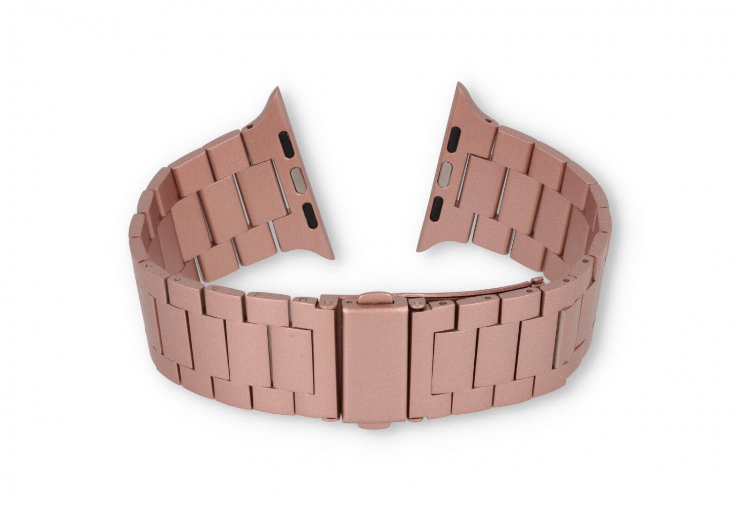 Steel Apple Watch band 38/40/41/42mm - Pink. This stylish watch band is made of high quality stainless steel with a strong security clasp. The flat link makes the watch band a lot lighter and you hardly feel it when you wear it.