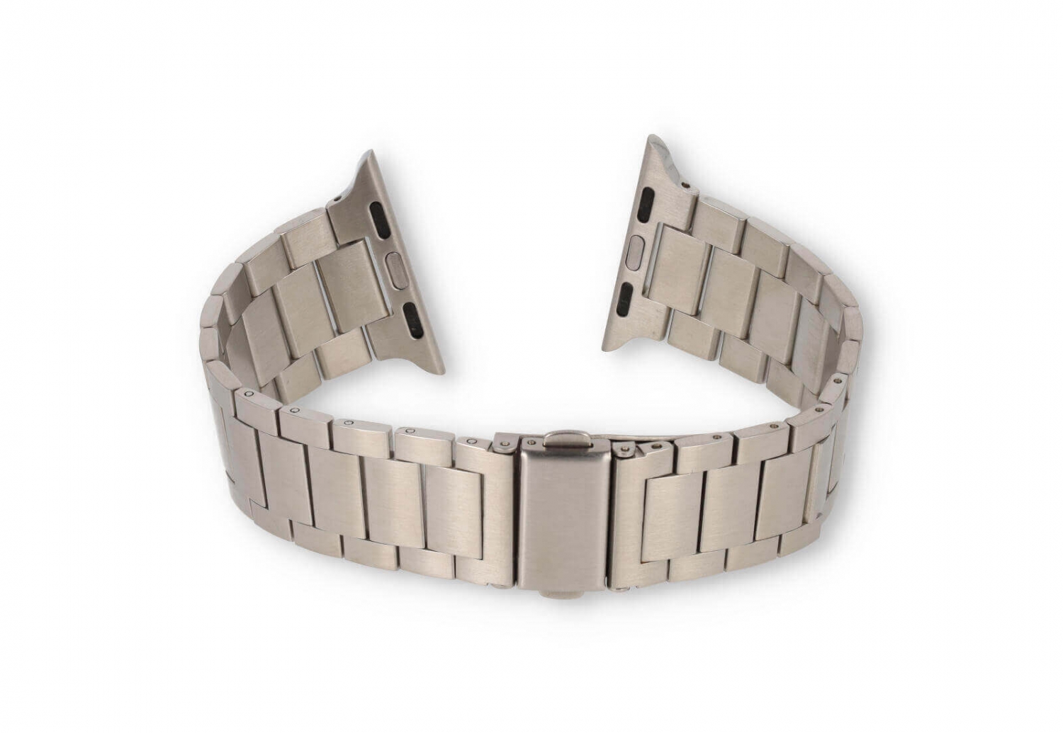 Steel Apple Watch band 44/45/46/49mm - Silver. This stylish watch band is made of high quality stainless steel with a strong security clasp. The flat link makes the watch band a lot lighter and you hardly feel it when you wear it.
