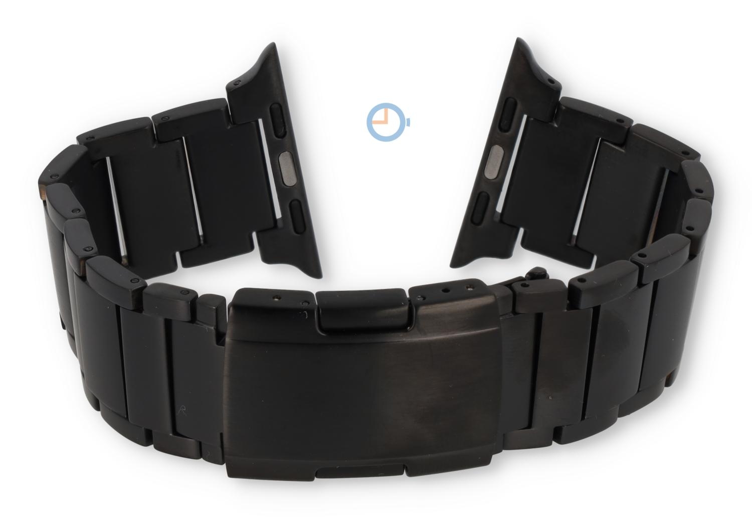 Titanium Apple watch band for the 42/44/45/49mm Apple watch - black. Give your Apple watch a stylish look with this titanium watch strap. This watch strap is allergy-free and easily adjustable with our pin remover.