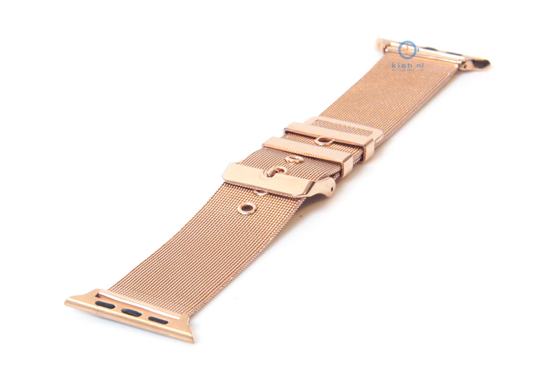 Apple watch watchstrap rose gold mesh. Stainless steel watchstrap with a comfortable buckle. This watchstrap is suitable to every Apple watch of 38mm. This watchstrap connects seamlessly with your Apple watch and is easy to assemble. View all Apple watch straps in our shop.