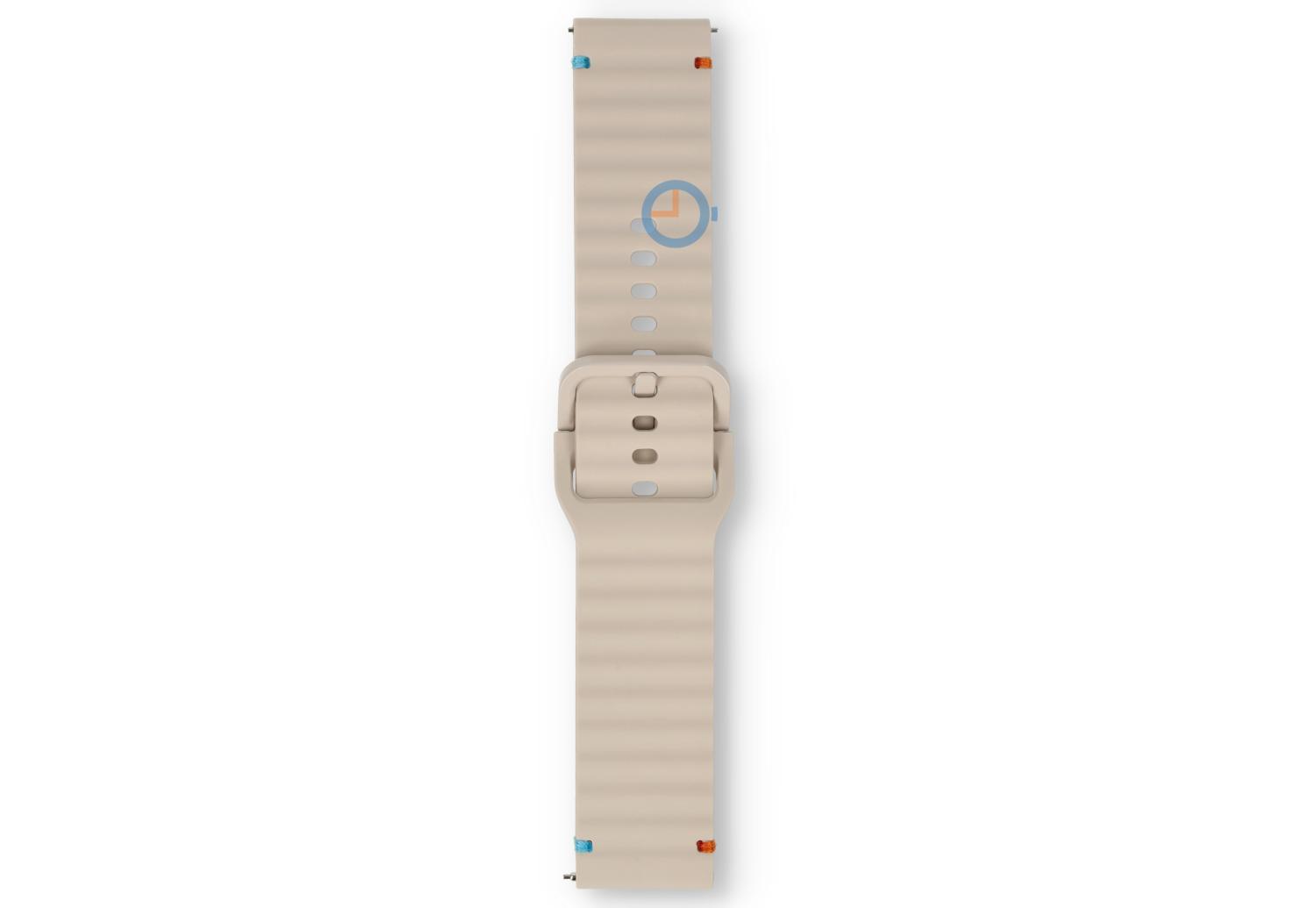Approach S42 strap: 20mm starlight | Upgrade your watch with this stylish beige silicone watch strap, designed for comfort and durability. The strap features a unique tuck under design and has a width of 20 mm, Perfect for watches with a sporty look. The subtle blue and orange stitching on the side gives the strap a sporty touch, while the co-coloured stainless steel buckle ensures a seamless finish.