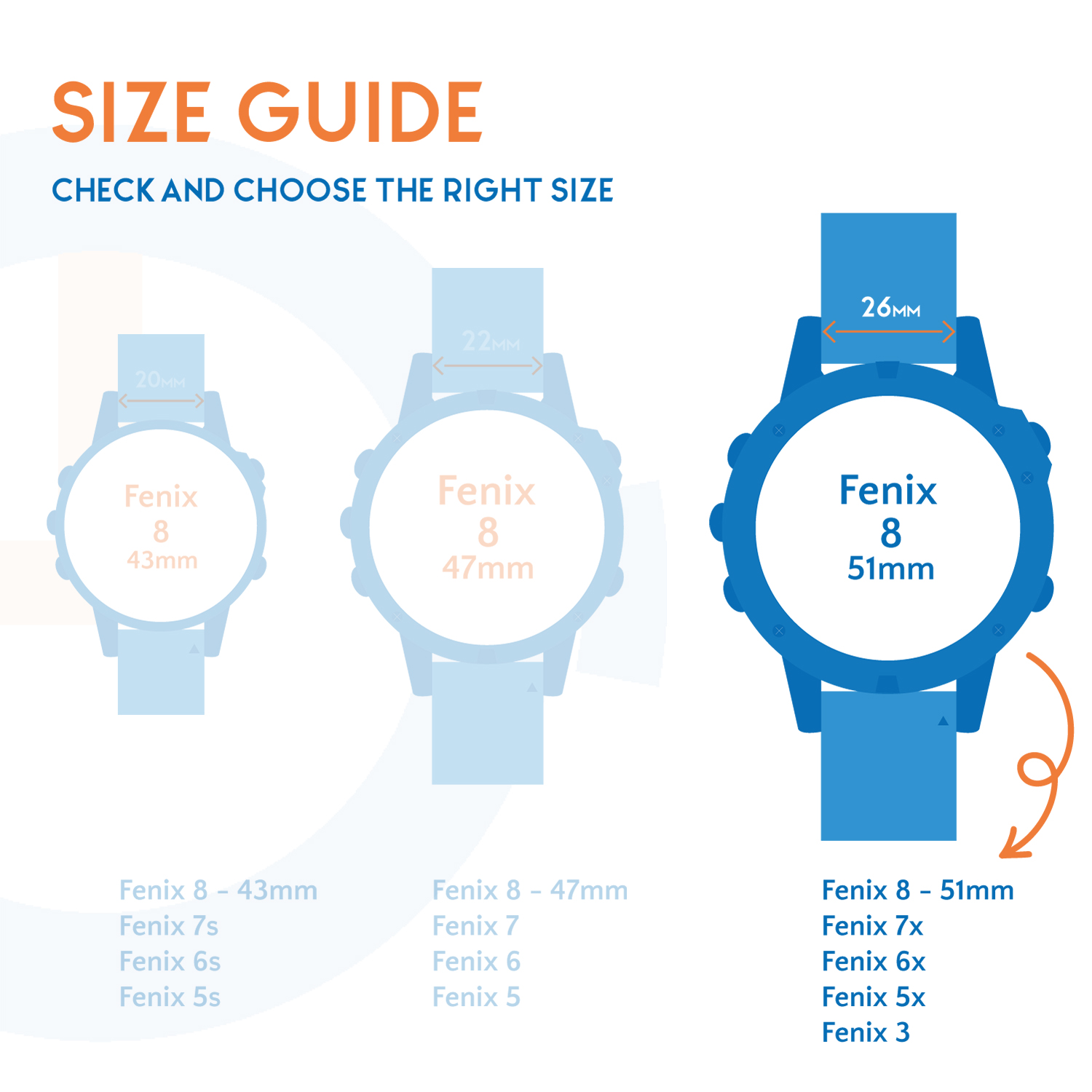 Give your Garmin [Fenix 8 - 51mm] watch a completely new look with this amazing QuickFit titanium watch strap (26mm). This matte-and-polished strap is compatible with popular Garmin models including the Fenix 7X, Fenix 6X, and Fenix 5X. The links and clasp are made of titanium, while smaller components like the pins are metal – making the strap incredibly lightweight.