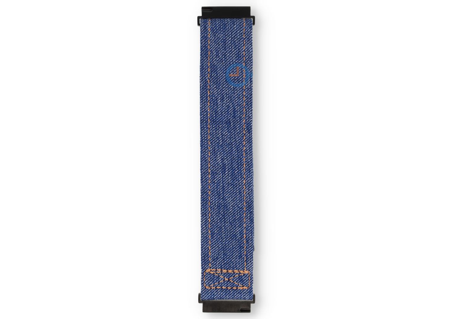Quick Switch Garmin Fenix (22mm) Strap with Velcro Fastening - Give your watch a rugged, casual look with this 22mm denim fabric strap. The blue strap features striking orange stitching and a jeans-style label as a cool detail. The black Quick Switch fastening makes it easy to replace the strap yourself; the necessary pins are included for free.