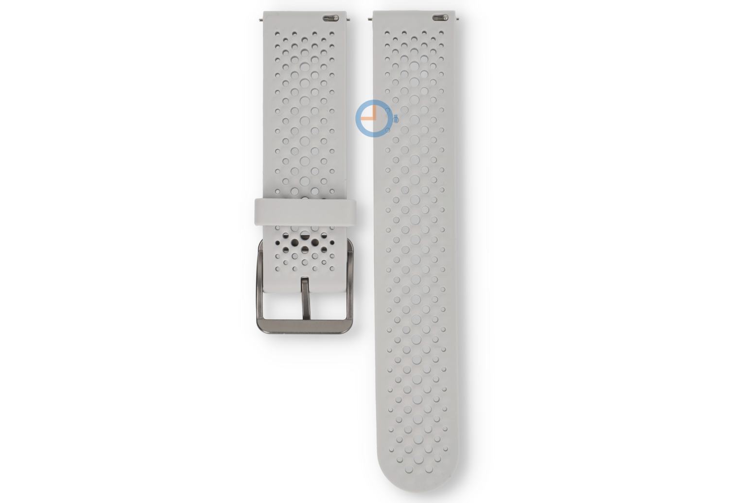 22mm grey Silicone Watch Strap - Breathable and Sporty | This universal soft silicone strap is perfect for anyone seeking comfort and a sporty look. The perforated design ensures optimal ventilation, keeping your wrist cool even during the most intense activities. This strap is compatible with various watches featuring a (straight) lug width of 22mm.