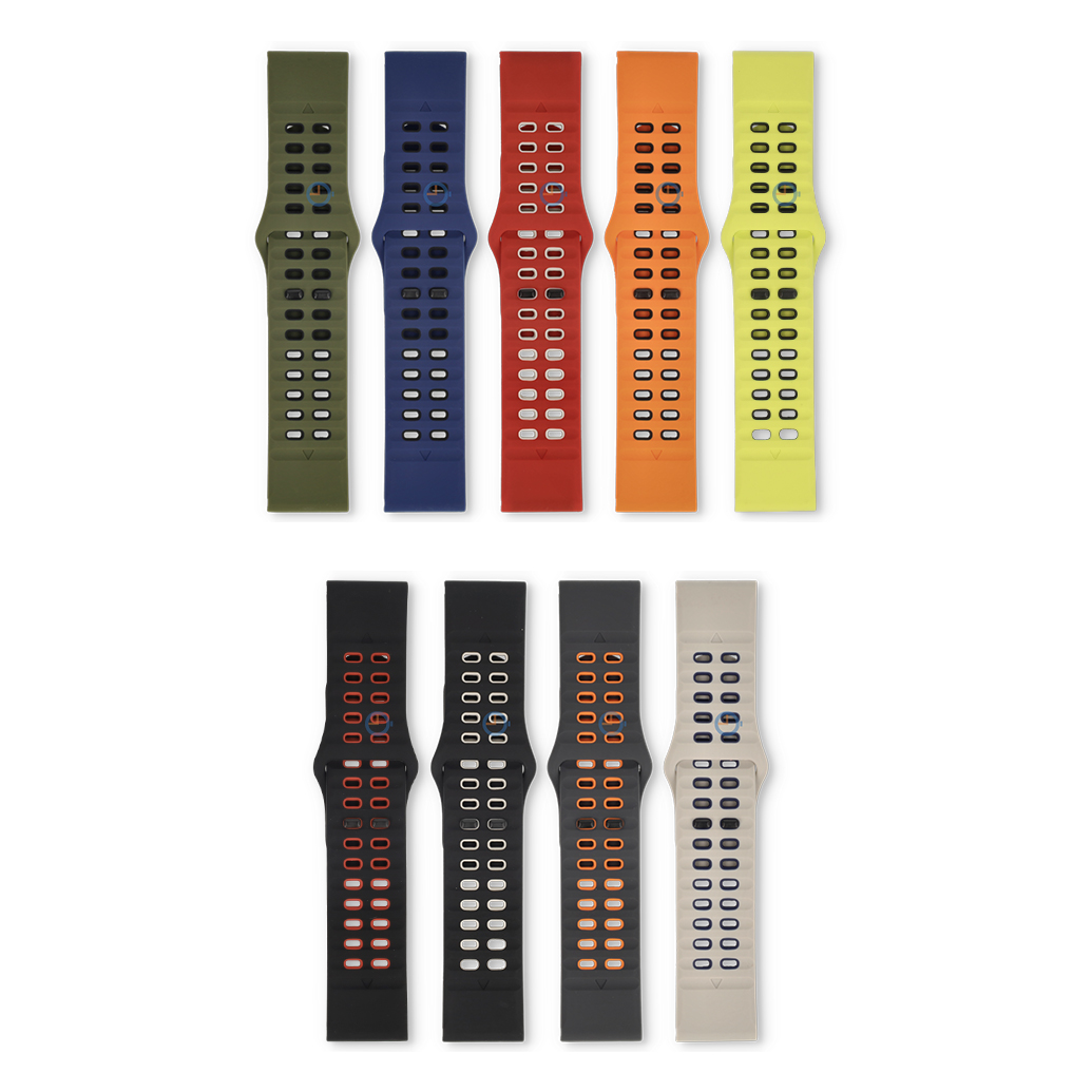 Comfortable watch strap with no loose end: two-tone silicone strap with a tuck-under closure. Thanks to the clever design, you slide the end of the strap underneath, so everything stays neatly in place.