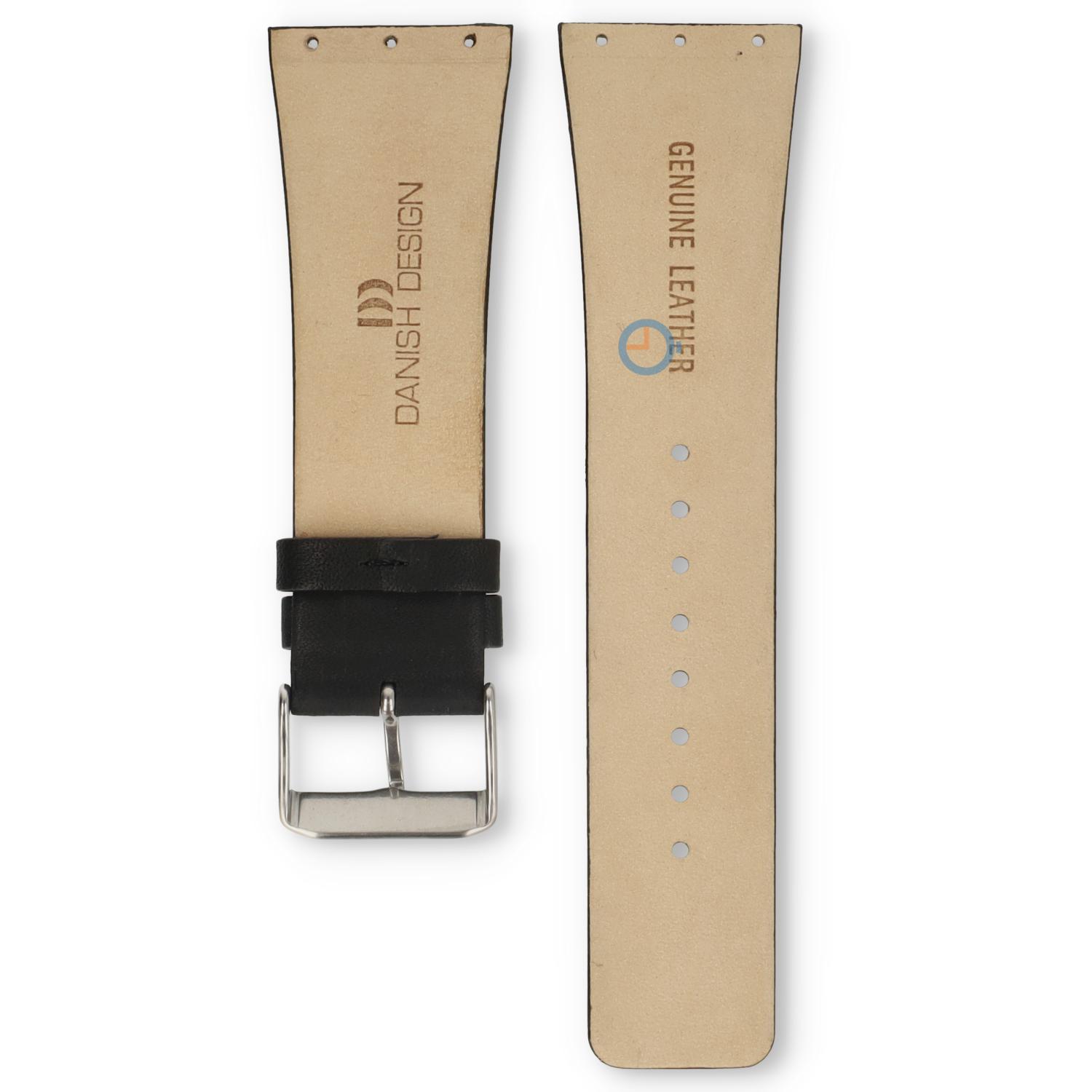 Original Danish Design watchstrap, black leather. Comfortable watchstrap made of real leather that fits on the IQ13Q641/IQ12Q641 model. This strap has a silver buckle and will be places with 2 screws per side.