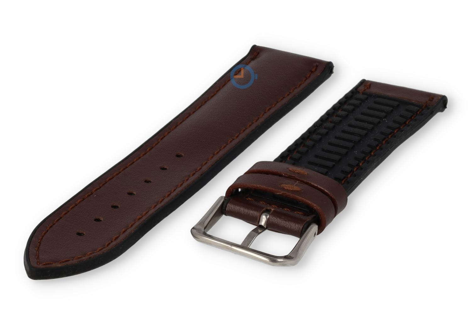 Universal Watchband 22mm silicone. With this watchstrap you have the comfort of a rubber watchstrap and the look of a leather watchstrap. The watchstrap has a brown leather top layer and is finished with a brown stitching.