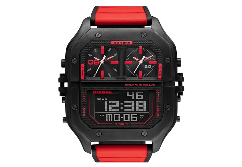 A rubber strap gives a sporty look to the watch Diesel stands for characteristic watches with a tough look.