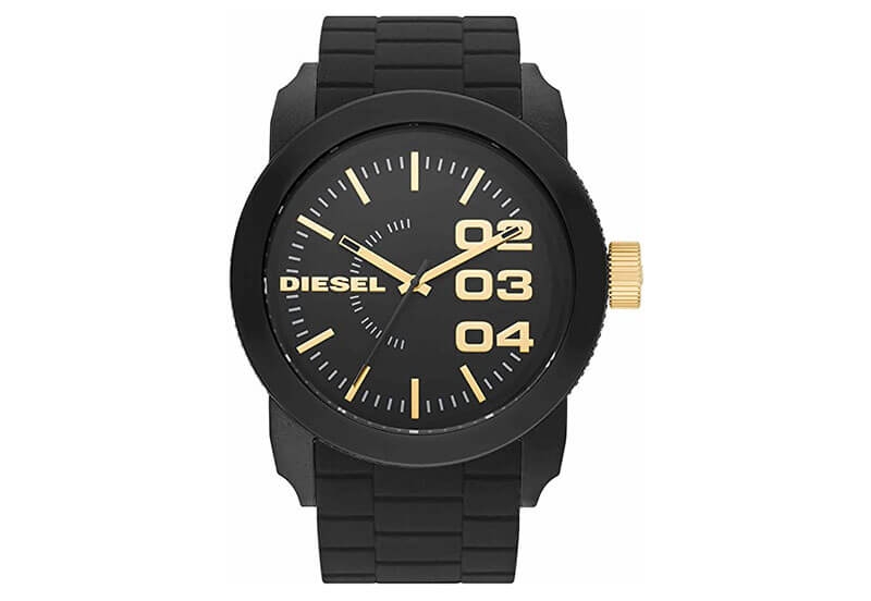 A rubber strap gives a sporty look to the watch Diesel stands for characteristic watches with a tough look.