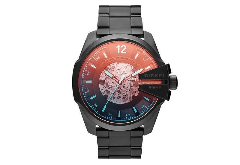 A steel watch strap gives a robust appearance to the watch Diesel stands for characteristic watches with a tough look.br />