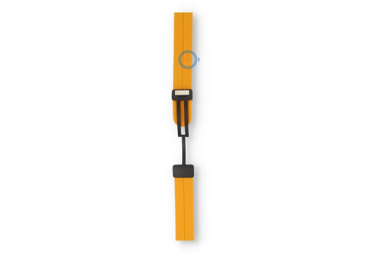 Snelwissel strap - 16mm - ochre. Find the perfect match and choose from numerous or new colours of straps. This watch strap of 16mm, made of supple and durable silicone, instantly makes your watch sportproof in a stylish way. Perfect for sporting activities and everyday use, the band wears at different sizes - perfect for the smallest wrist. Because the watch strap has a secure, magnetic clasp, you no longer need tools to determine the size. Not only easy, but also quick.