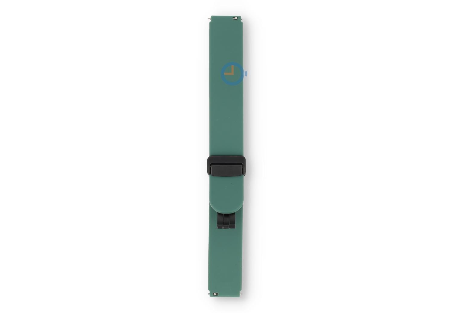 Snelwissel strap - 16mm - sage green. Find the perfect match and choose from numerous or new colours of straps. This watch strap of 16mm, made of supple and durable silicone, instantly makes your watch sportproof in a stylish way. Perfect for sporting activities and everyday use, the band wears at different sizes - perfect for the smallest wrist. Because the watch strap has a secure, magnetic clasp, you no longer need tools to determine the size. Not only easy, but also quick.
