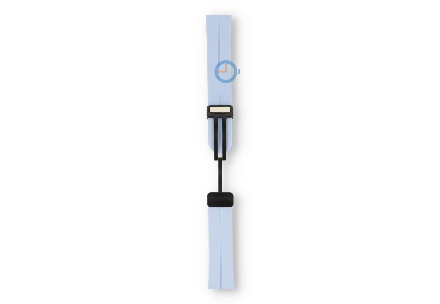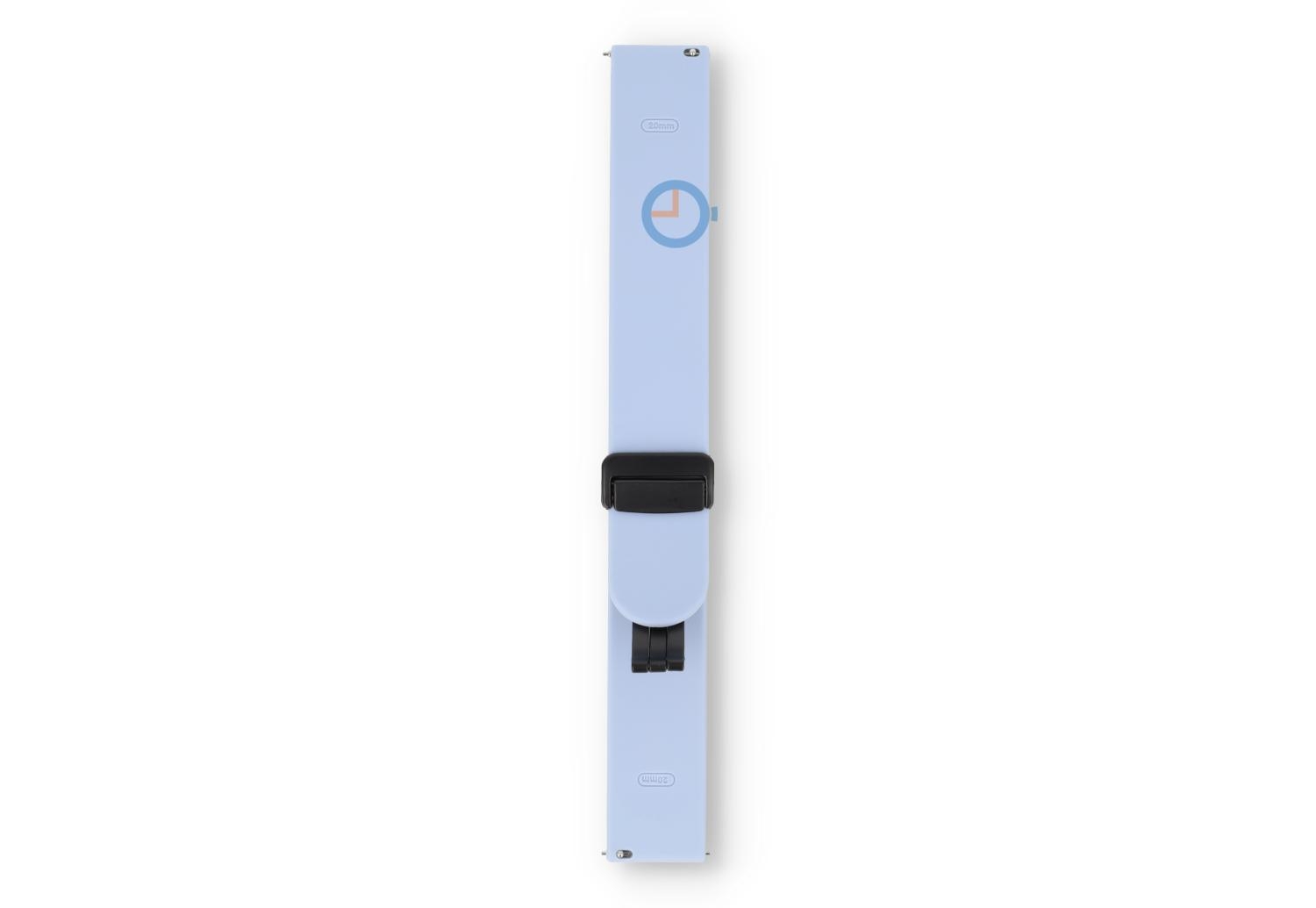 Bandje met snelwisselsysteem - 20mm - Pastelblue. Find the perfect match and choose from numerous or new colours of straps. This watch strap of 20mm, made of supple and durable silicone, instantly makes your watch sportproof in a stylish way. Perfect for sporting activities and everyday use, the band wears at different sizes - perfect for the smallest wrist. Because the watch strap has a secure, magnetic clasp, you no longer need tools to determine the size. Not only easy, but also quick.