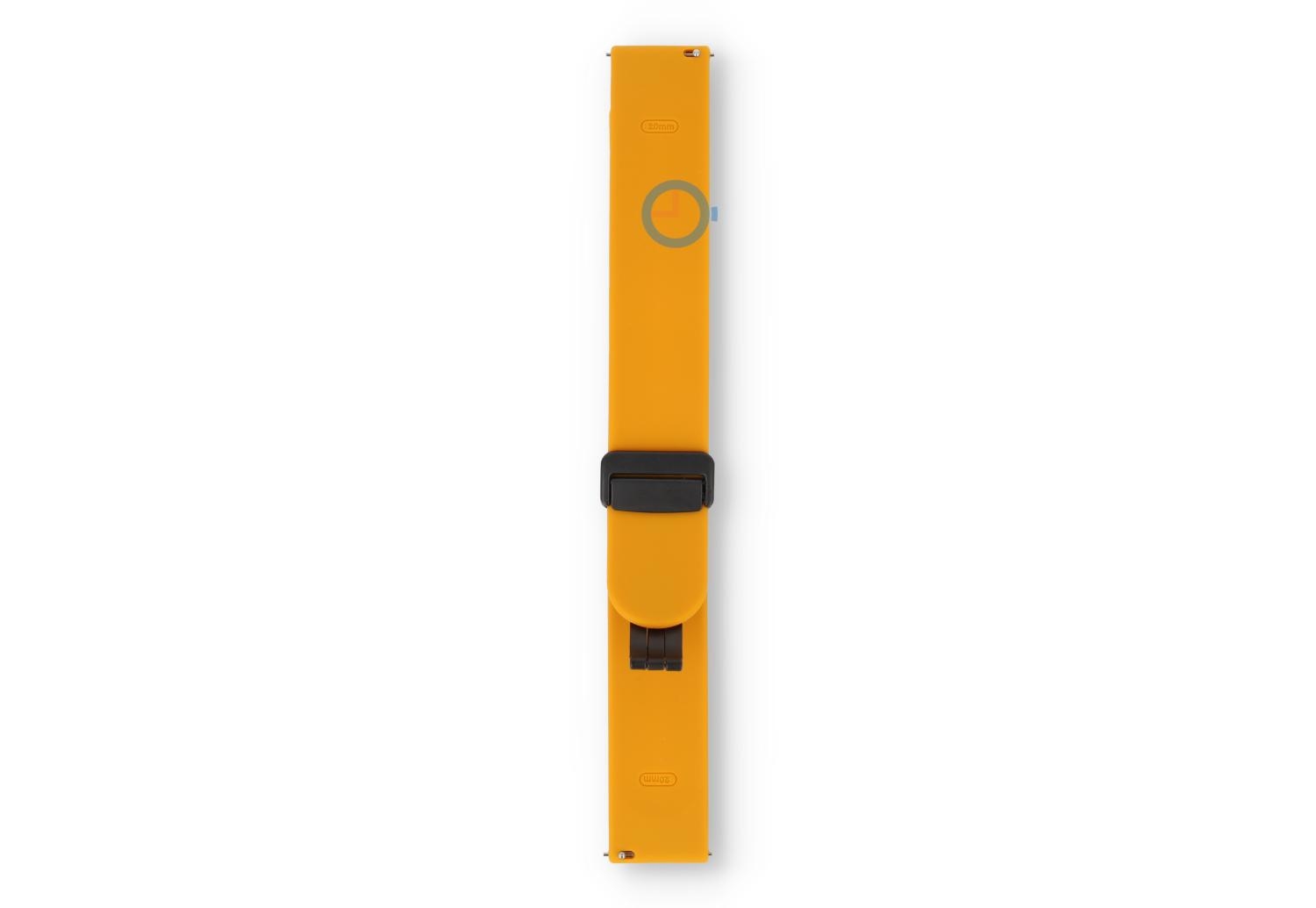 Bandje met snelwisselsysteem - 20mm - ochre. Find the perfect match and choose from numerous or new colours of straps. This watch strap of 20mm, made of supple and durable silicone, instantly makes your watch sportproof in a stylish way. Perfect for sporting activities and everyday use, the band wears at different sizes - perfect for the smallest wrist. Because the watch strap has a secure, magnetic clasp, you no longer need tools to determine the size. Not only easy, but also quick.