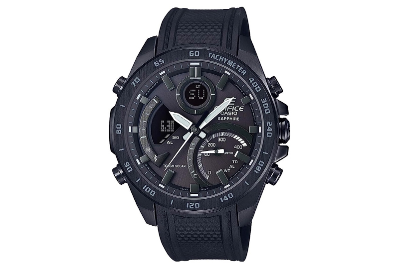 The replacement watch strap for Edifice ECB-900PB-1A. This strap is made of sturdy black rubber and closes with a steel buckle. This watch strap has a round starter and this strap cannot be attached to other watches.