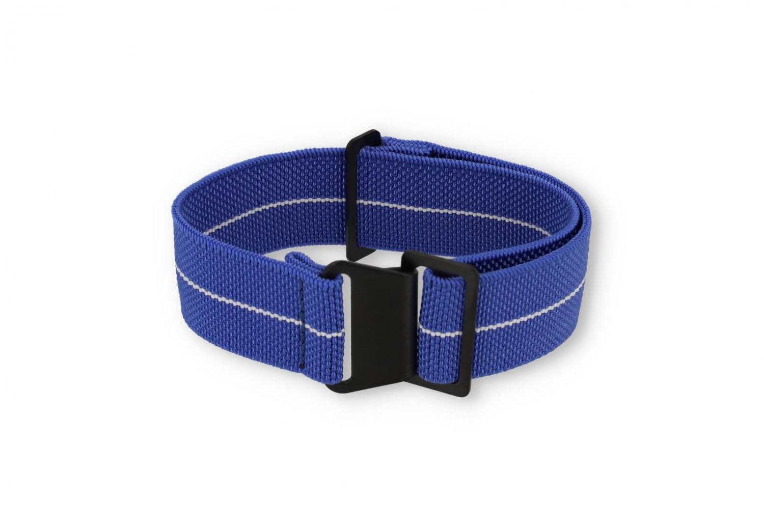 Elastic nylon woven 20mm watch strap that fits effortlessly around your wrist. This nylon watch strap is made ofparachute parts and was worn by the Navy in the 60's and 70's. Therefore this watch strap is super strong . Ideal for outdoor activities in any kind of weather. You close the watch safe and quick with the stainless steel buckle.