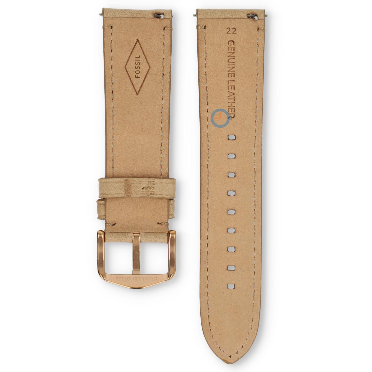 Fossil Q FTW2102 watchstrap. This strap is made leather and has a fine comfort. This beige 22mm leather watch strap comes with buckle and quick release system. Order the springbar removal tool along to refresh catch the strap even easier. View all Fossil watchstraps in our shop.