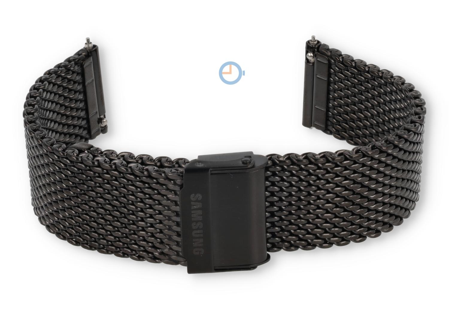 This strap has a universal, straight start, is 20mm width and 190mm long. You can change the size of this Samsung watch strap very easily with the adjustable closure.