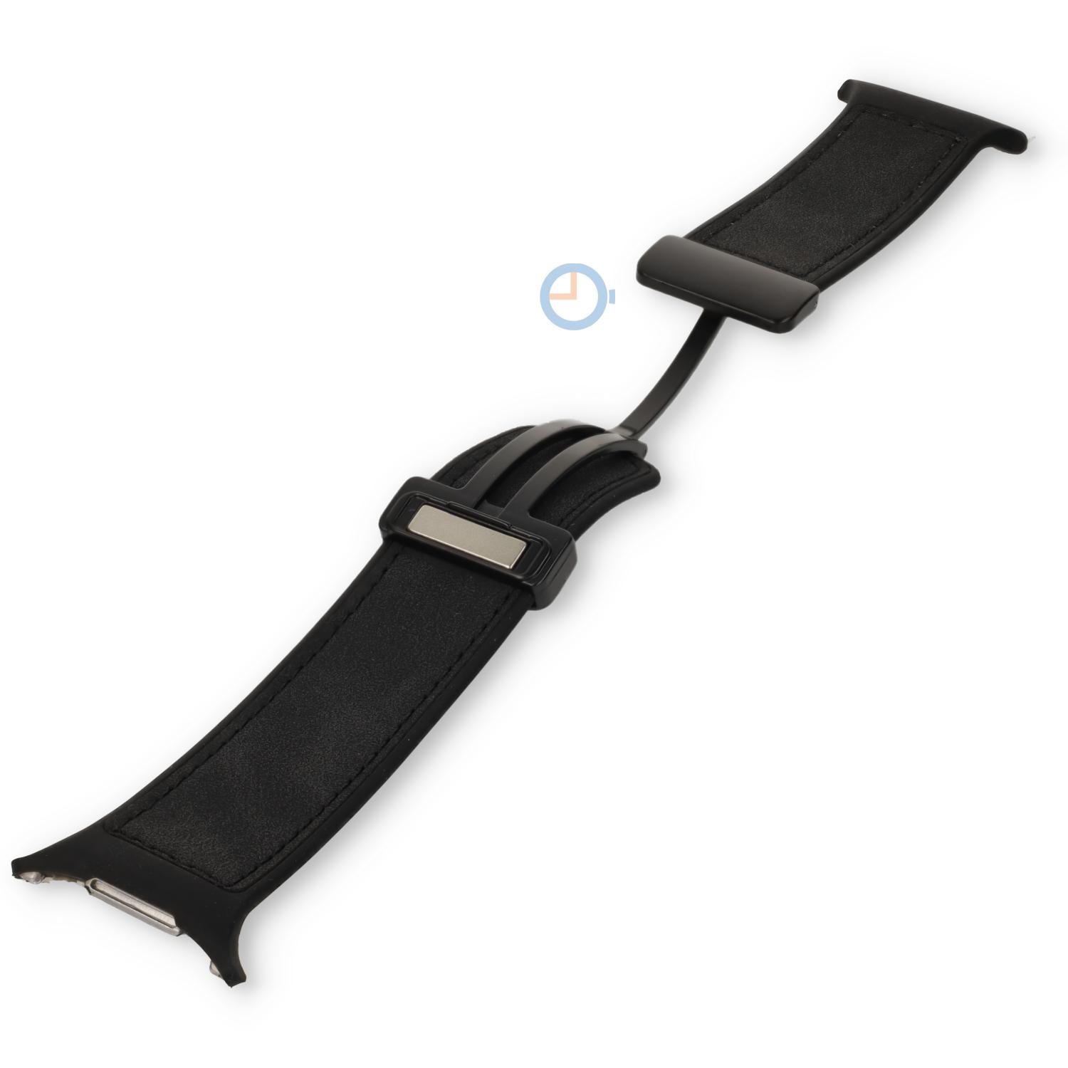 Stylish Hybrid Leather/Silicone Band for Galaxy Watch Ultra | black with black