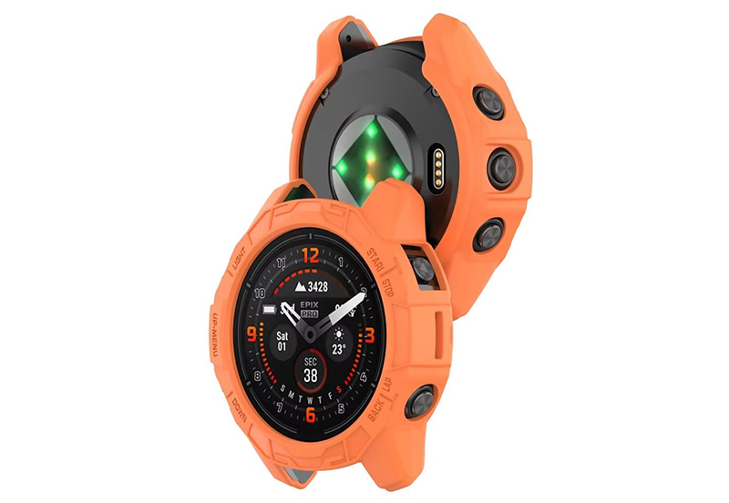 Give your Garmin Epix Pro (47mm) the ultimate in protection with this stylish orange cover. Specially designed for a perfect fit, it protects your watch from scratches, bumps and dirt without compromising functionality. The high-quality material ensures a firm grip and a comfortable feel on your wrist. Moreover, the screen remains fully visible and operable. Add a touch of colour and extra protection to your Garmin Epix Pro (47mm) with this indispensable accessory.