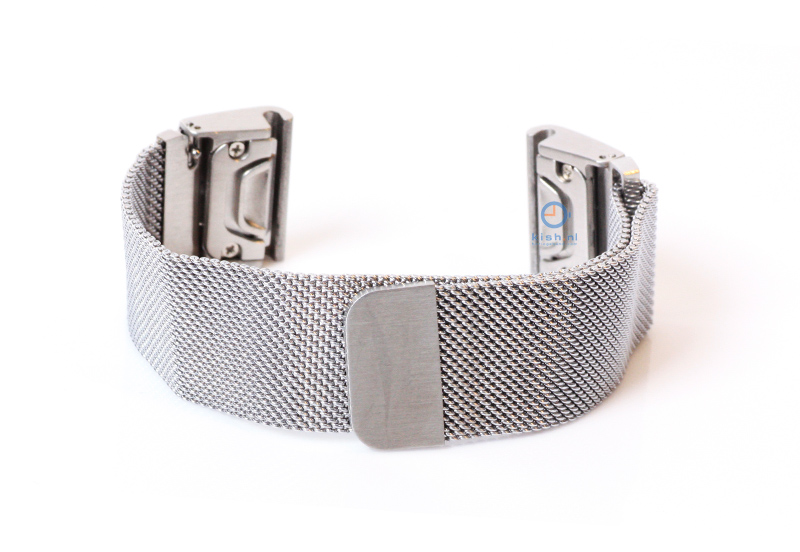 Garmin Fenix 5/6/7 watchstrap mesh silver. With this mesh watchstrap, you will give your watch a new look. The watchband is 20mm width and closes with a magnet. This strap is suitable for the Garmin Fenix 5.The strap is easy to mount on your watch with the quick fit system. See all Garmin watchstraps in our shop.