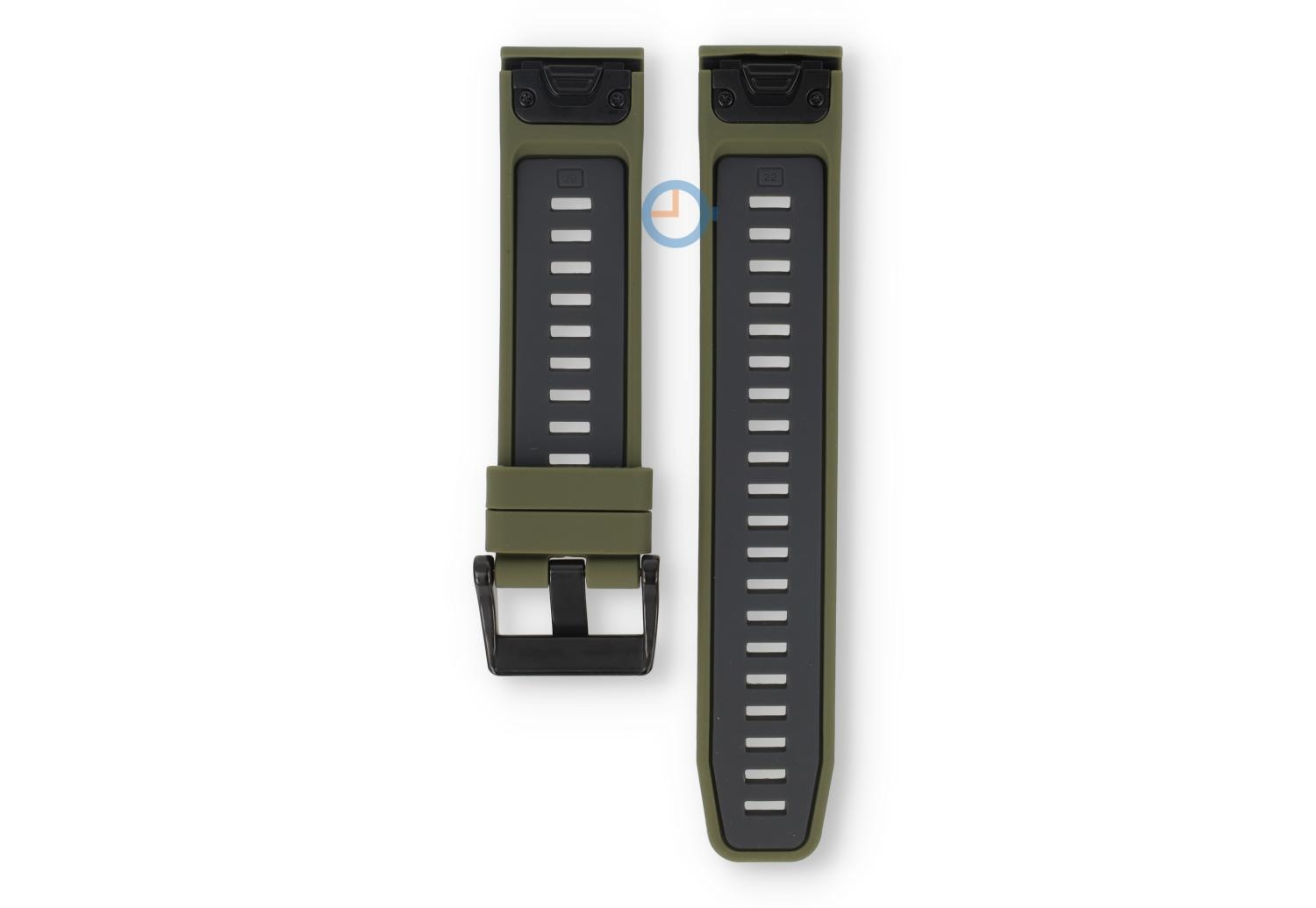 22mm strap with QuickFit for Garmin - dark green/grey. Best quality at a lower price. Order now this Premium watch strap for your Garmin sports watch. Our strap, like the original, has a long lifespan, but on the other hand is a lot cheaper. What's more, you'll receive the watch strap quickly because of our own stock!