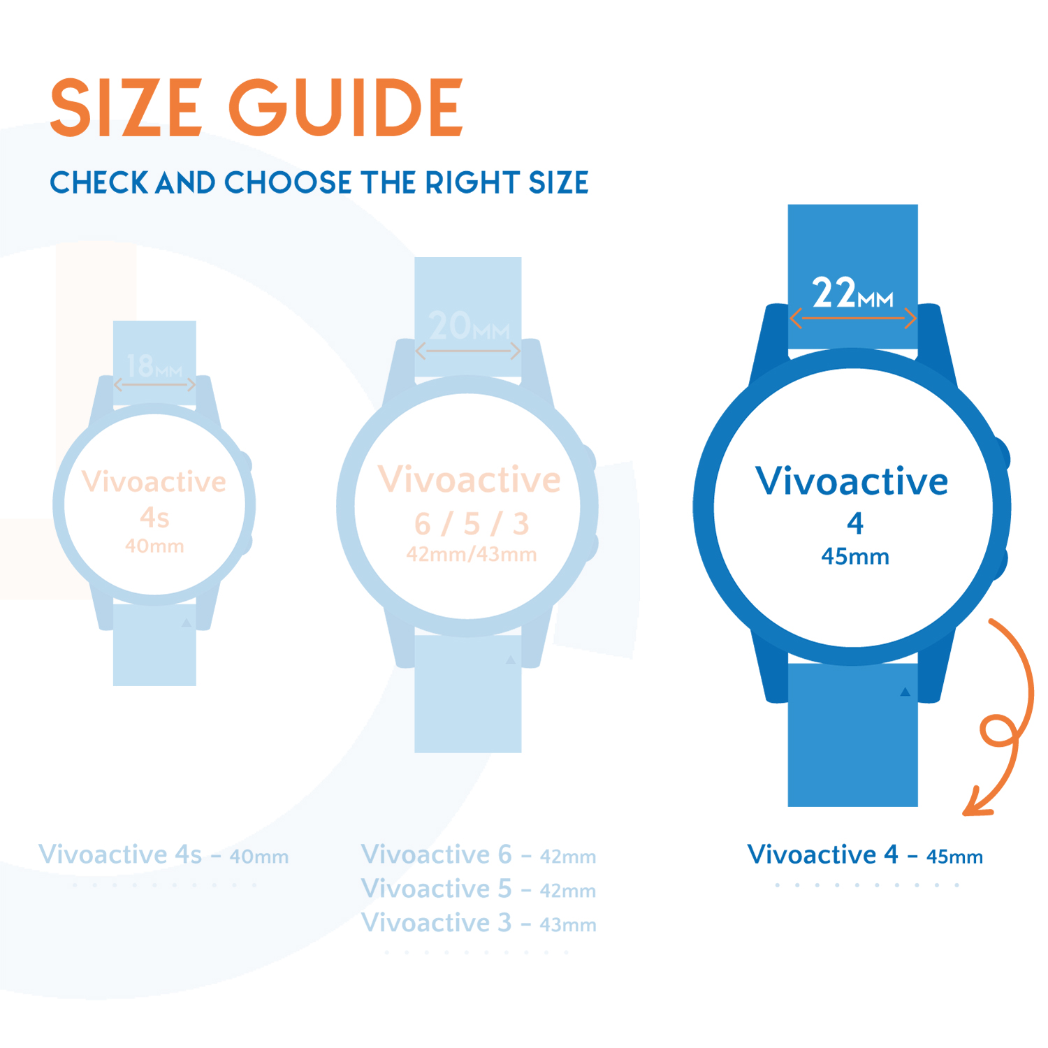 This Garmin watch strap is suitable for: