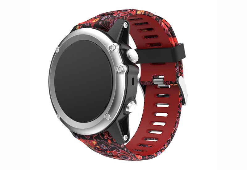 Garmin watchband Fenix 3 floralprint red. This silicone watch strap is very flexible which results in a nice wearing comfort. The watchband comes with screwdrivers and closes with a buckle closure. This strap is suitable for the Garmin Fenix 3 watches. See all Garmin watchstraps in our shop.