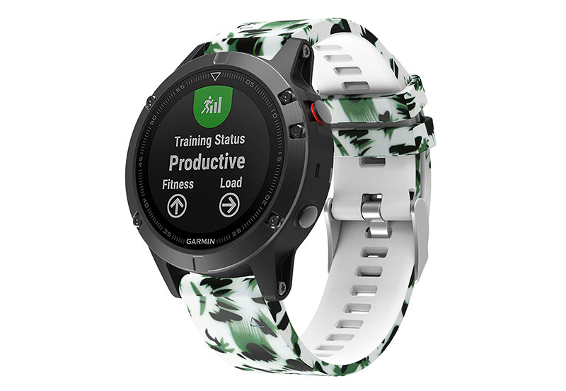 Garmin watchstrap Fenix 5/6/7 white with print. This silicone watch strap is very flexible which results in a nice wearing comfort. The 22mm watchband comes with screwdrivers and closes with a buckle closure. This strap is suitable for the Garmin Fenix 5, Approach S60, Forerunner 935 en de Quatix 5. The strap is easy to mount on your watch with the quick fit system. See all Garmin watchstraps in our shop.