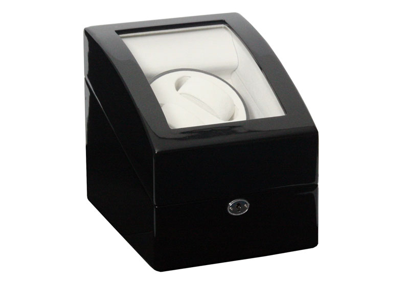 Luxury watchwinder for 2+3 watches. This black high gloss watchwinder has the capacity to wind 2 watches at the same time. There is also extra space to storage (XXL)3 watches. Inside this watchwinder you find a spinningwheel which has space for 2 watches. The removable cushions will fit almost every watch. The circumference is 150-170mm. This pretty watchwinder is made of wood and has a high gloss finish, like pianos. The window is made of plastic and you can close this winder with a key, which is in included.