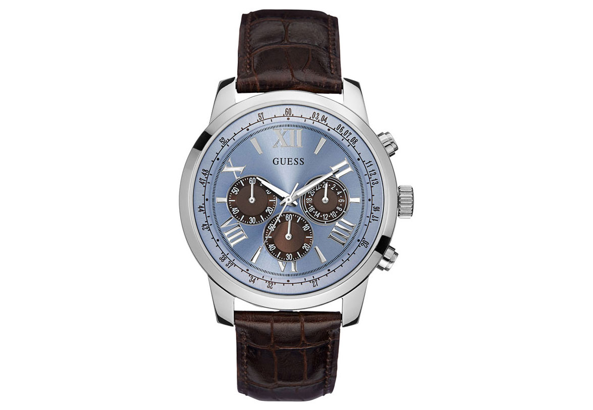 Original watchstrap Guess W0380G6. This brown leather watchstrap will be closed with a buckle. It is easy to replace this strap with a springbar removal tool. See all our Guess watchstraps in our shop.