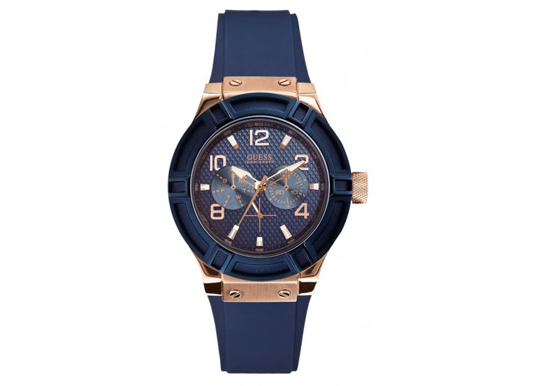 Original watchstrap Guess W0571L1. This blue rubber watchstrap will be closed with a buckle. It is easy to replace this strap with a springbar removal tool. See all our Guess watchstraps in our shop.