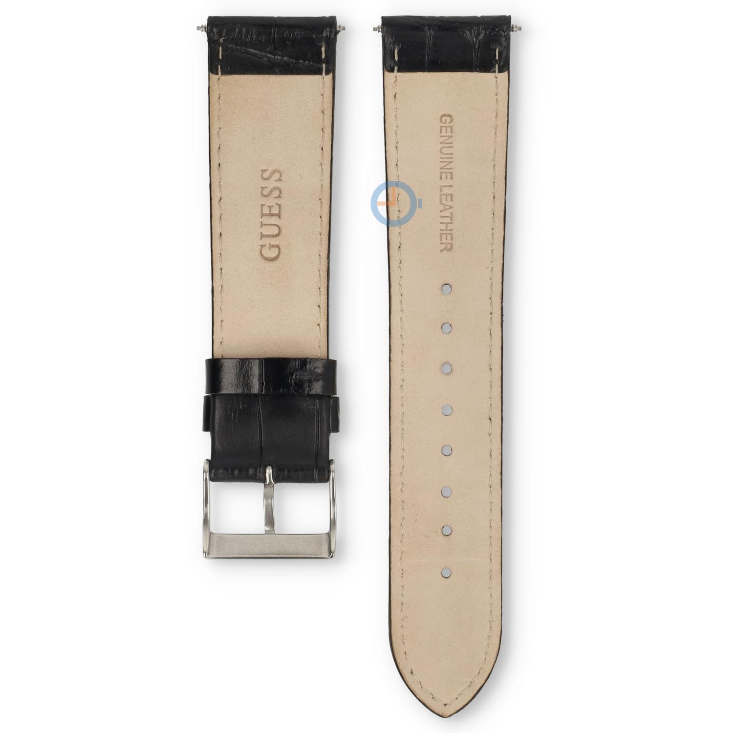 Original watchstrap Guess W0673G4. This black leather watchstrap will be closed with a buckle. It is easy to replace this strap with a springbar removal tool. See all our Guess watchstraps in our shop.
