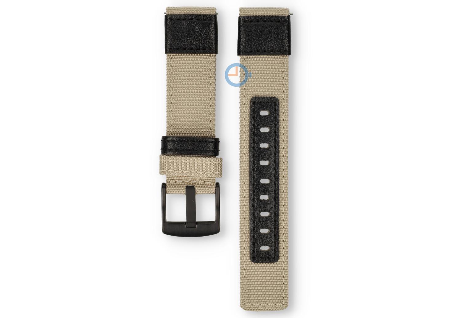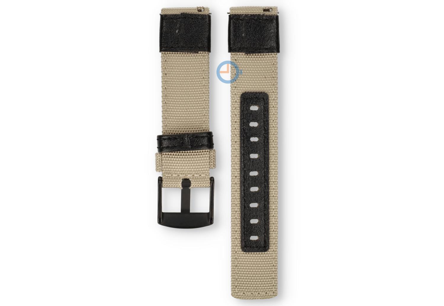 Experience the best of both worlds with thisbeige hybrid watch band van nylon and leather. At 20 mm wide, this strap combines the robustness of nylon with the sophistication of leather, for a stylish and durable choice. The leather reinforcement at the onset and hole side provides extra strength in the most used areas, making your watch strap last longer.