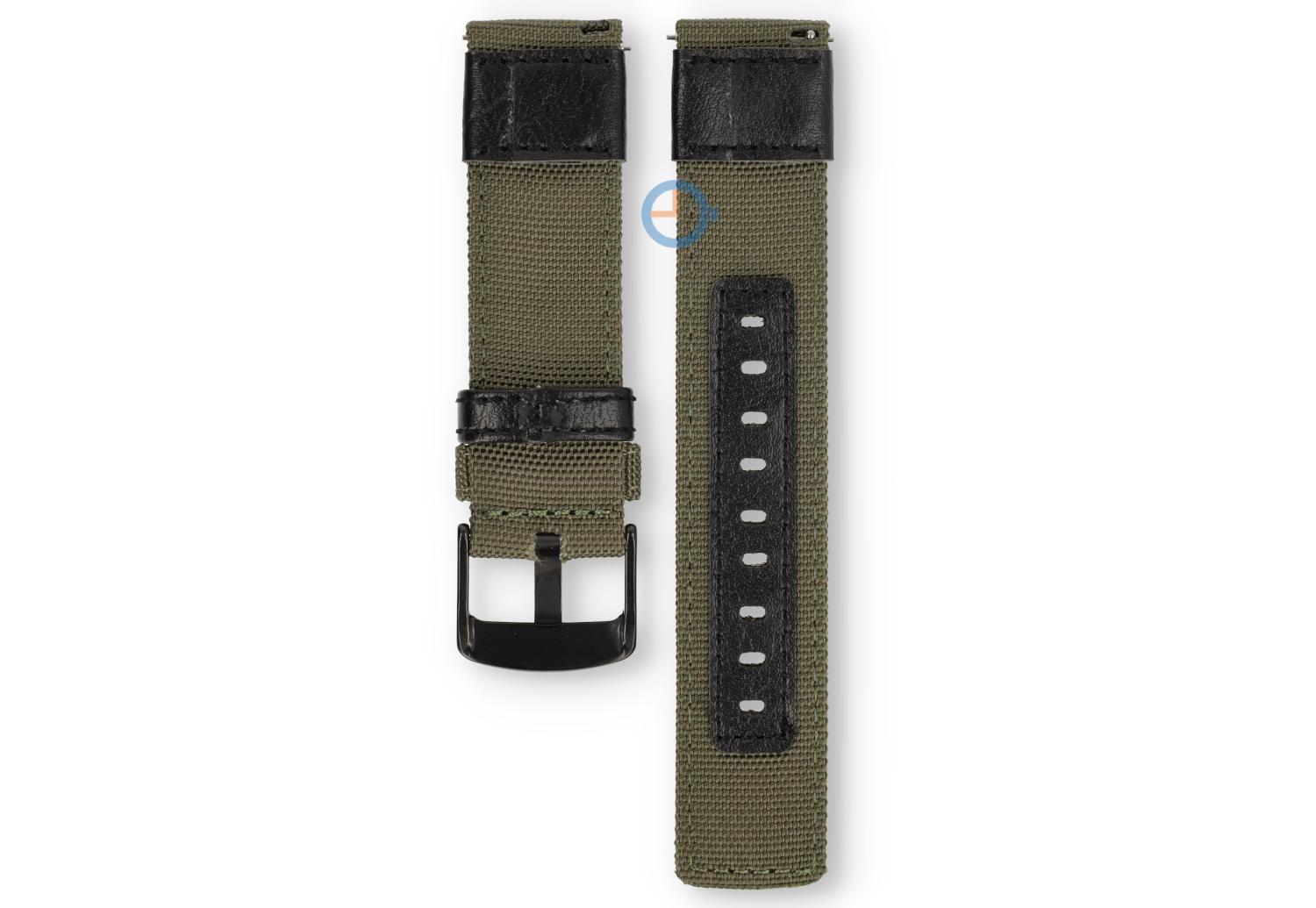 Hybride watch strap - nylon/leather - 20mm green