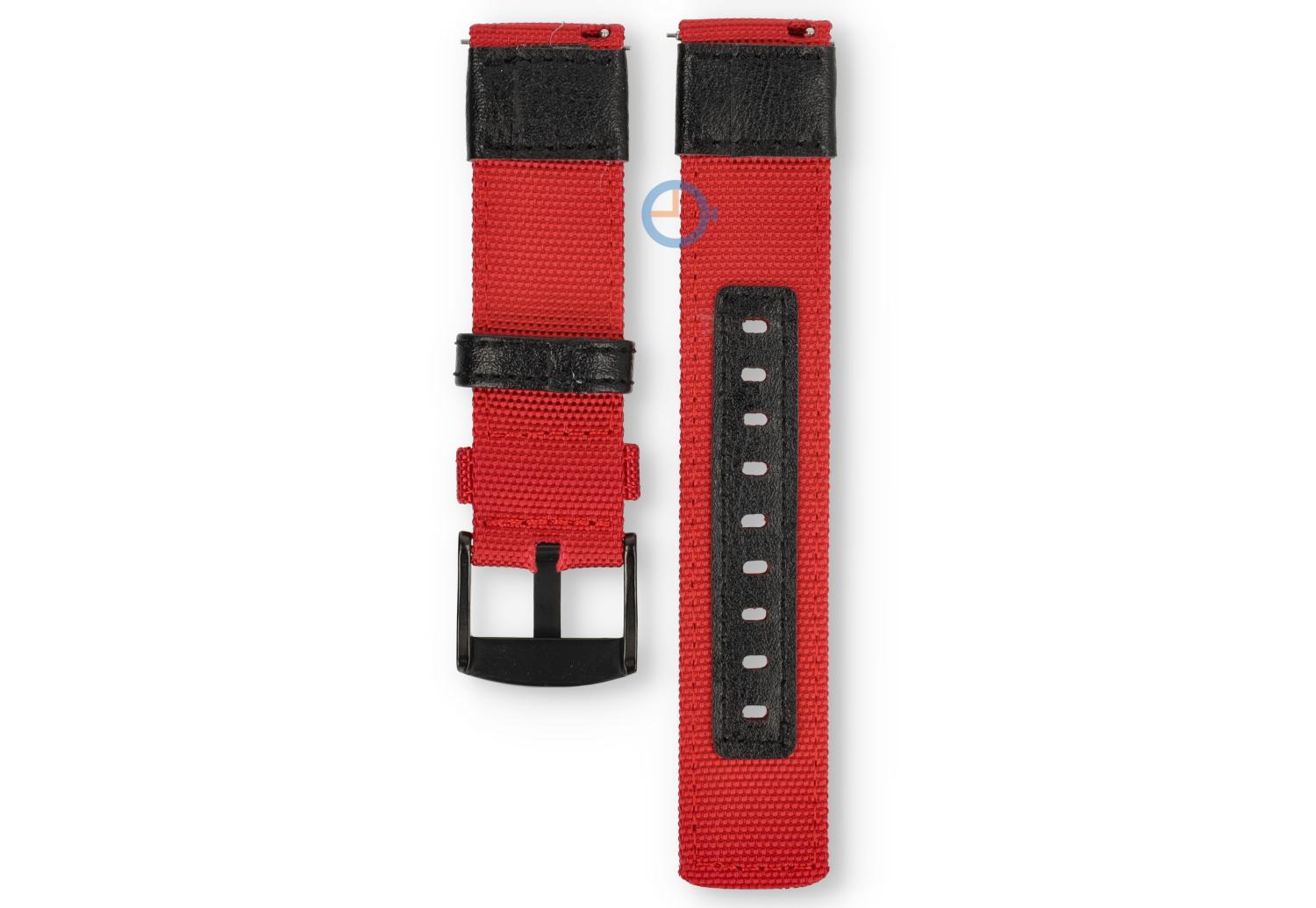 Hybride watch strap - nylon/leather - 20mm red
